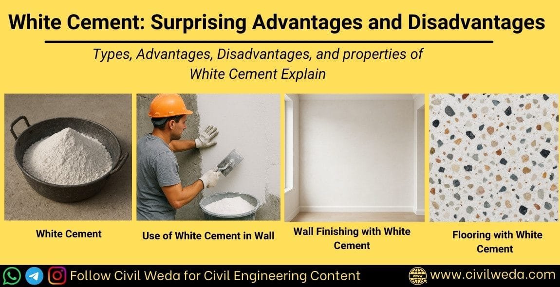 We hope this article helped you clearly understand the White cement in civil engineering. If you found this complete article useful, please share it with your friends and university students. For more informative posts on civil engineering topics, stay connected with Civil Weda. 🚀